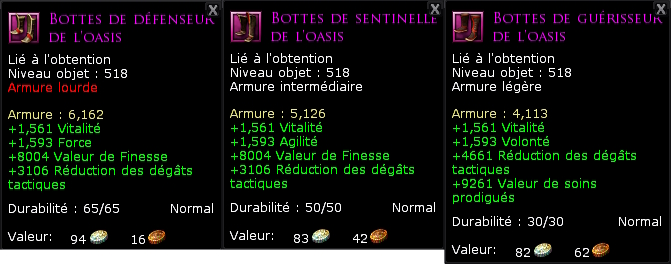 * Bottes de défenseur de l'oasis | * [[Fichier:Icone armure pied.jpg]] Bottes de défenseur de l'oasis | ||